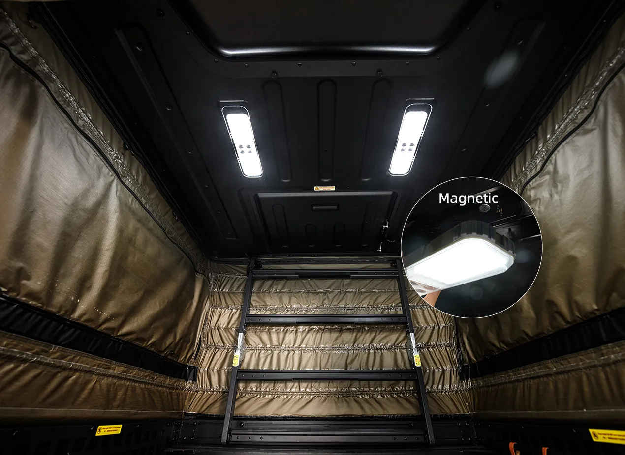 Sowohl das Erdgeschoss als auch das Obergeschoss sind mit magnetischen Lichtleisten mit hoher Lumenzahl ausgestattet.
